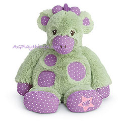 Bitty's Snuggly Giraffe This adorable giraffe is perfect for snuggling. Like the one featured in the Bitty Baby and Me picture book, this toy has super-soft light-green fur and polka-dot fabric accents, with a cute embroidered face and Bitty Baby logo on one foot. Her body is huggable, with a weighted bottom to help her sit up! Aug 2013 |