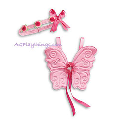 Wings & Wreath Set for Dolls Bitty Baby can be a beautiful butterfly at dress-up time! Made to match the Prima Ballerina set, these pink satin wings feature swirly stitched accents, shoulder straps to keep them in place, and a star-heart center with trailing ribbons. Add a satin wreath adorned with rosettes and a double-bow for the finishing touch! Aug 2013 |
