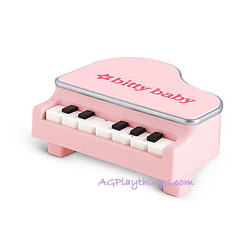 Pink Play Piano Bitty Baby can put on a recital with this toy piano! It's just her size, featuring silver-colored trim and a printed logo. She can push the keys to hear the musical notes, or flip the switch to hear three different classical songs. Aug 2013 |