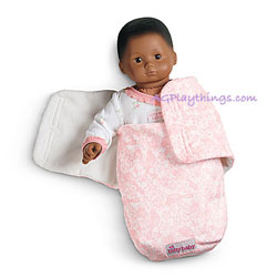 Bitty's Wrap Blanket She can wrap up her little bundle of joy! This cozy blanket is made of fleece to keep her Bitty Baby® doll snuggly and warm—Baby fits right inside, and the flaps are designed to secure in front for just the right fit. Jan 2013 |