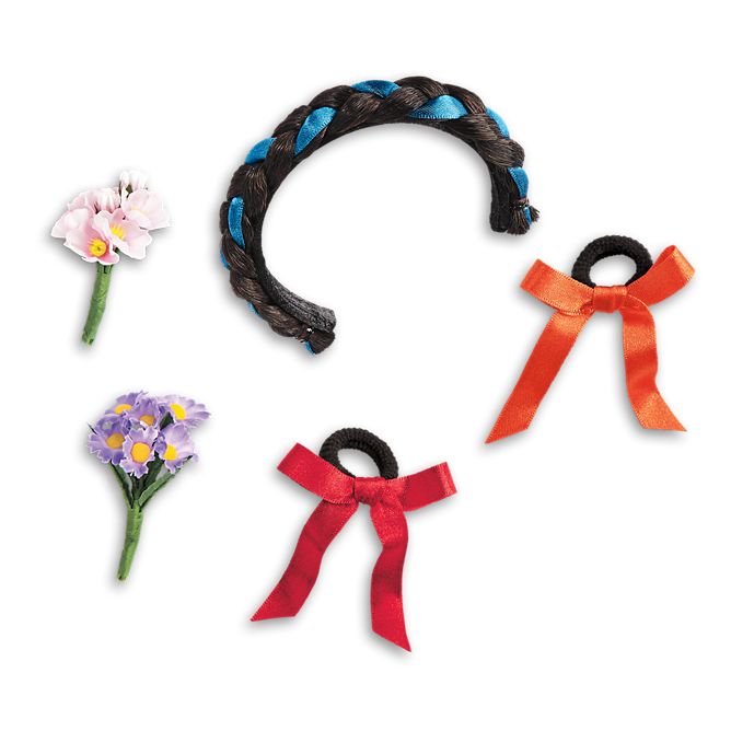 Josefina's Hairstyling Set Authentic to Josefina's style in 1824, her ribbon-braid headband and hairbows are perfect for life on the rancho, and weaving in flowers gives her hairdo a pretty pop! |