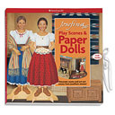 Gentle Josefina Montoya has warm brown eyes that open and close, golden hoop earrings, and long, shiny mahogany-colored hair. She comes in an authentic 1824 outfit: A white camisa edged with lace. A colorful border-print skirt. A blue woven belt. White drawers. Faux-leather moccasins. A little sprig of yellow primroses tied with a blue ribbon in her hair. The 18" Josefina doll has a huggable cloth body, and her movable head and limbs are made of smooth vinyl. Includes the paperback book Sunlight and Shadows, the first novel-length volume of Josefina's classic series. Josefina Doll & Book Item# BKL02 $115 *Released August 2014-Josefina did not get a third Beforever book or a 3 book set collection* |