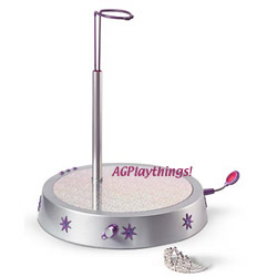 Marisol’s Spotlight Stage and Tiara Once her rhinestone tiara is placed in her hair just right, Marisol can spin round and round on this rotating stage with pink spotlights! At the end of her performance, she’ll love to hear cheers and applause as you press the special buttons. An attached doll stand holds her in place. Assembly required. GYAR $30 discontinued 2005 |
