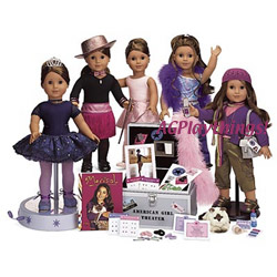 Marisol's Whole World Collection Includes: Marisol Doll and Book, Performance Trunk, and Duffle and Cat, Ballet Outfit, Spotlight Outfit, Tap Outfit, Spotlight Stage and Tiara, Wooden American Girl Stand and Book. |