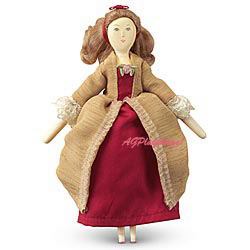 Your Elizabeth™ doll arrives dressed in a coral pink taffeta gown. Underneath, she wears a white shift, stockings, and shoes. Brush her long blond hair and gather it with a satin ribbon. Elizabeth is 18 inches tall and has a soft, huggable body with arms and legs you can pose. She has pierced ears with pretty earring posts.