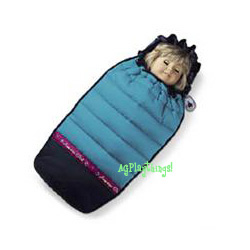 Mummy Bag When the night air gets colder, zip your American Girl into a cozy nylon sleeping bag with a hood for her head. The firefly zipper pull glows in the dark! $20 GAAM discontinued 2003 |